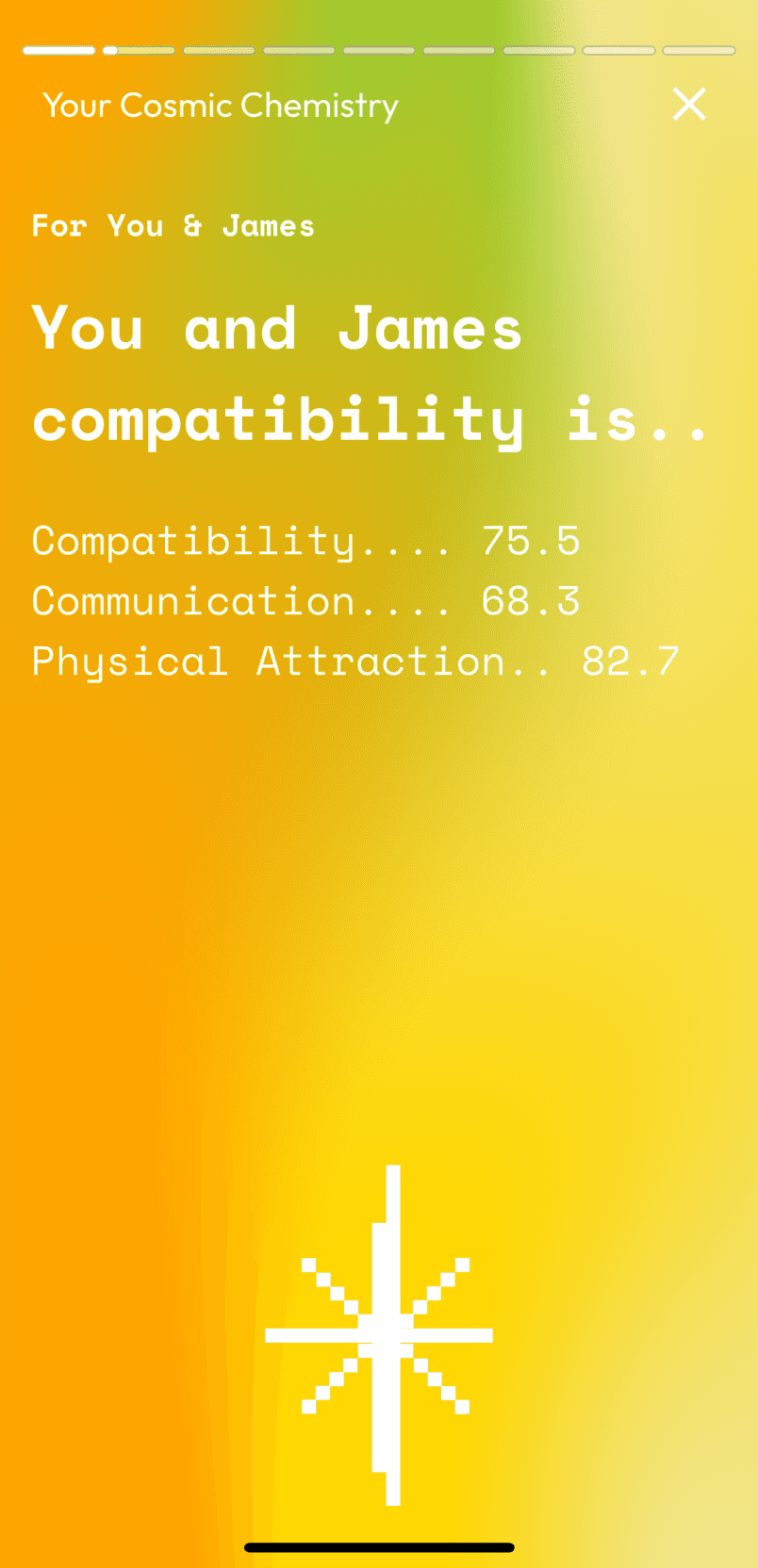 Display a compatibility score preview upfront, such as a percentage match or headline summary (“You and James are a 76% match: Curious Opposites”)