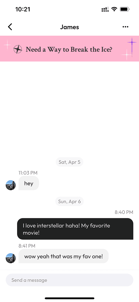 Suggested conversation starters tailored to the match’s zodiac and personality profile
